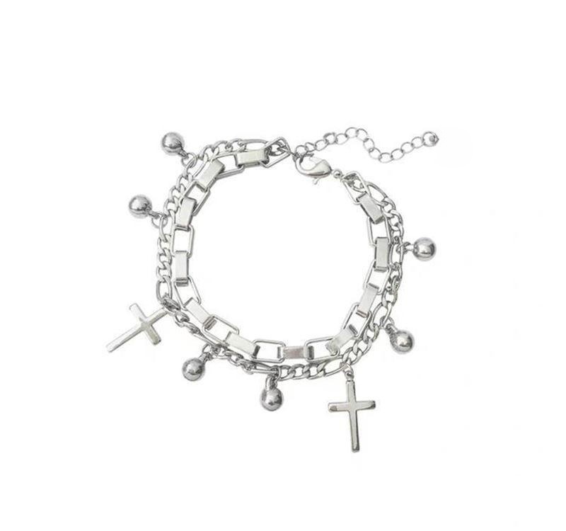 European and American style retro bracelet fashionable all-match metal double-layer cross pendant hip hop multi-layer bracelet