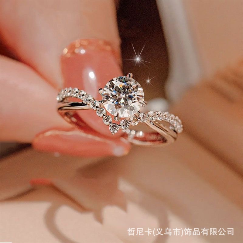 New luxury wedding ring diamond ring couple’s ring wedding ring fashion simple open mouth adjustable